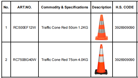 | Traffic Cone | 500 mm | PVC + Rubber Base | 2 band | Yes |