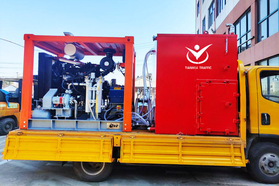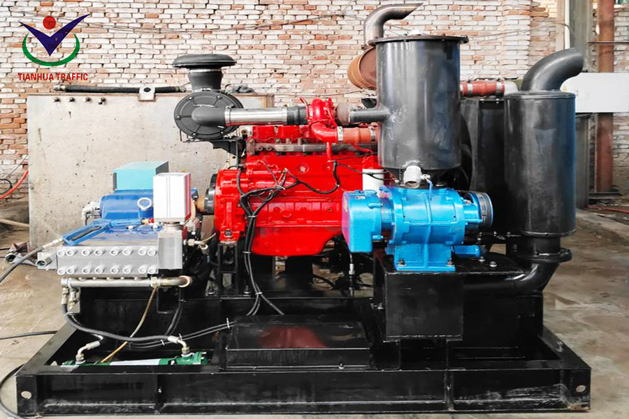 The Tianhua Traffic water-blasting removal machine can handle thermoplastic, epoxy, paint, rubber deposits, and tape without damaging the underlying asphalt or concrete.